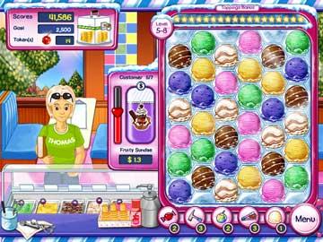 Help Cindy make her ice cream parlor a success. Match scoops and design beautiful ice cream sundaes, Unlock new