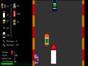 This overhead view game kind of reminds me of Spy Hunter. Your overall mission is to take out as many cars and trucks as possible by knocking them into the walls. Be sure to clear the path for emergency vehicles otherwise you may suffer some consequences. Drive over the wrenches and nitro containers to pick them up, they will help you on your journey. Beware of the Taxi Drivers - those people are nuts. Use your mouse button to activate the nitro.