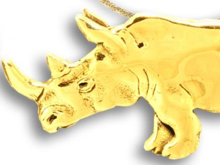 The 14K gold rhinoceros pendant is an unusual and striking design for