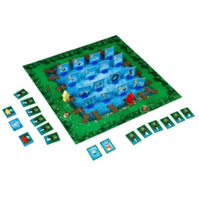 Who is the best angler? GAMES Magazine 2-Player Game Nominee 2006. 30 to 40 Minutes. One player takes the role of the two anglers and tries to catch as many fish as possible. The other player takes the role of the fish, and with bluff and skill tries to hinder the anglers from catching fish. The angler player decides where to fish, but must do so in the dark. So, he cannot really see where the fish are, as the fish cards are placed face down. Therefore, he does not know whether he is catching a fish or garbage. When he is lucky enough to catch a fish, he will not know until he lands it how valuable it is. With clever movement of his fish, the fish player tries to get garbage and small fish onto the angler's hooks. After one game, the players switch roles. After two games, the player with the most points is the winner.