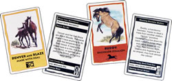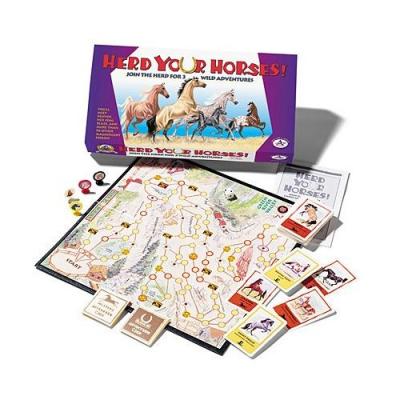 This horse board game include 55 full-color horse cards, 4 horse playing pieces and 42 adventure cards.