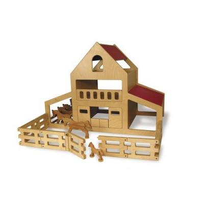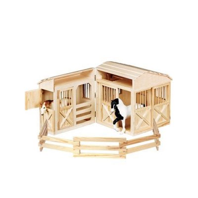 Start your own ranch with a wood barn, horse figurines, wooden fences and accessories.