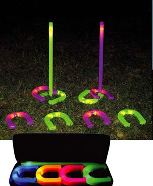 Light Up Horseshoes Play Horseshoe Pitching even in the dark with this electric set