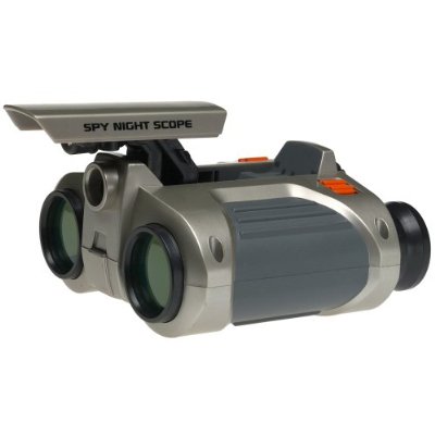 Shed some light on your spy gear collection. This amazing Spy Night Scope allows you to see in the dark with a special night-vision beam. This scope has won award for design. The Spy Night Scope works like binoculars, but has a pop-up spotlight allowing you to see up to 25 feet in the dark. Green-tinted lenses and beam illuminate the night for stealth surveillance. Scope also features 5x power magnification to bring faraway objects up close.