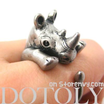 Rhinoceros Rhino Animal Hug Wrap Ring in Silver or Gold!