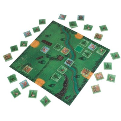 What happens when the hunter becomes the hunted? One player takes the role of the hunters and the lumberjacks; the other takes the role of the foxes and the bears. Both players hunt each other! At first, the forest lies peacefully under the face down tiles. As the players turn the tiles over and move them on the board, the forest awakens and the hunt destroys the serenity of the forest. The lumberjacks cut swaths through the forest to provide hunting fields for the hunters. The bears then use these same aisles to track the hunters and the lumberjacks. The two sides are balanced with luck dominating the early game, but skill taking over at the end. Good hunting! This family boardgame is for 2 players and takes about 30-45 minutes to play. Both players hunt each other! At first, the forest lies peacefully under the face down tiles. As the players turn the tiles over and move them on the board, the forest awakens and the hunt destroys the serenity of the forest. The lumberjacks cut swaths through the forest to provide hunting fields for the hunters. The bears then use these same aisles to track the hunters and the lumberjacks. The two sides are balanced with luck dominating the early game, but skill taking over at the end. Good hunting!